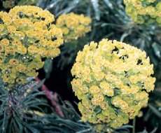 chariacas wulfenii, eine ornamentale Wolfsmilch mit walzenförmigen, gelben