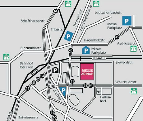 Linie 11 bis Messe/Hallenstadion Linie 10 oder Linie 14 bis Sternen Oerlikon |