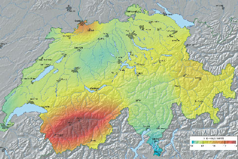 Erdbebenkarte 2004 (Swiss Hazard Map). |